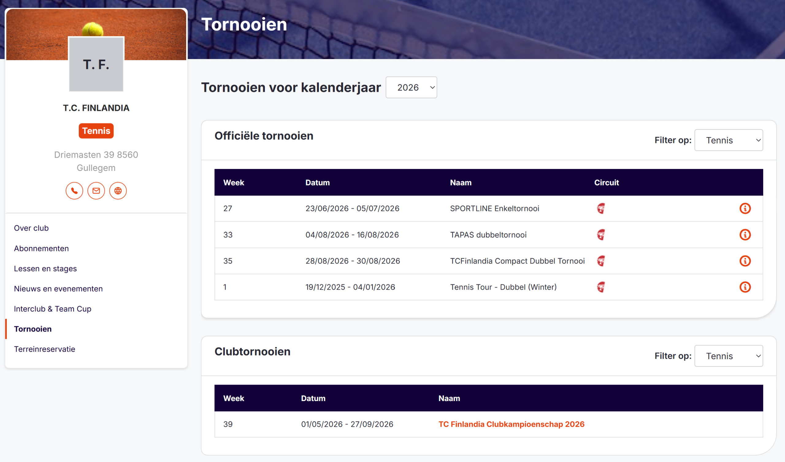 | 35 | 28/08/2026 – 30/08/2026 | TC Finlandia Compact Tornooi – Dubbel 2026 |